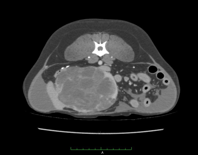 症状は多くの場合無症状ですが、腫瘍が大きくなってくるとお腹が大きくなってくるので、そこで見つかることがあります。