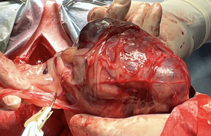 脾臓腫瘍を摘出している画像